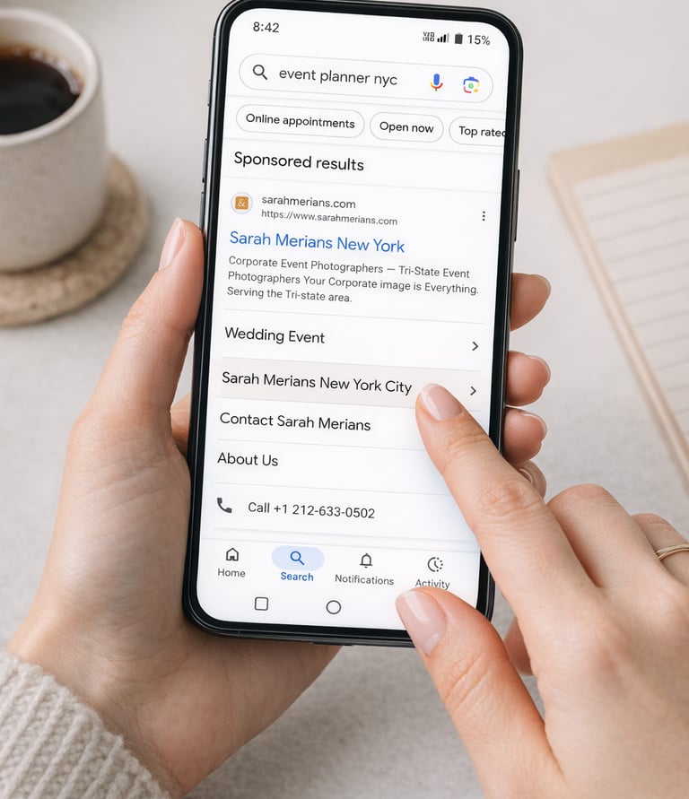 Yes. When someone searches for an event planner in your city, they already have intent. Google Ads allows your business to appear at the top at that exact moment, increasing your chances of getting the inquiry.